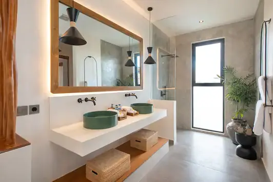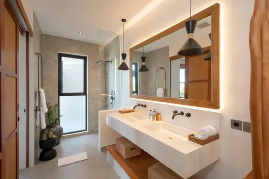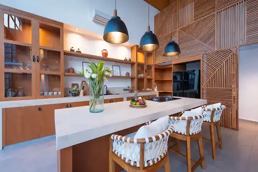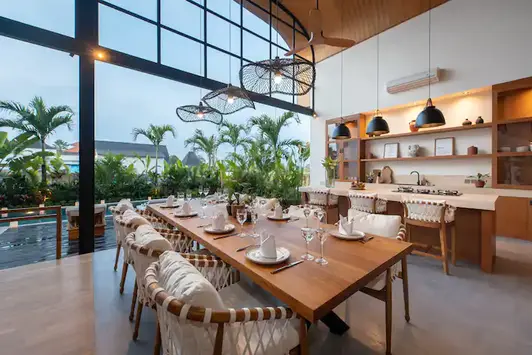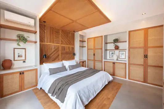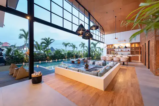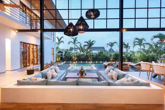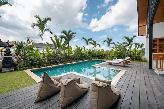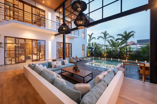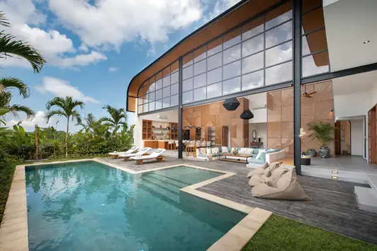 This villa is a stunning newly built 4 bedroom designer pool villa located in the hip and happening area of Berawa/Canggu. This luxurious villa is a haven of escape quietly positioned for your peaceful enjoyment yet only moments from the bustling cafes, beach clubs, restaurants, shopping and nightlife of Bali’s most desirable tourists destination.