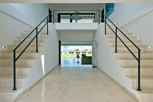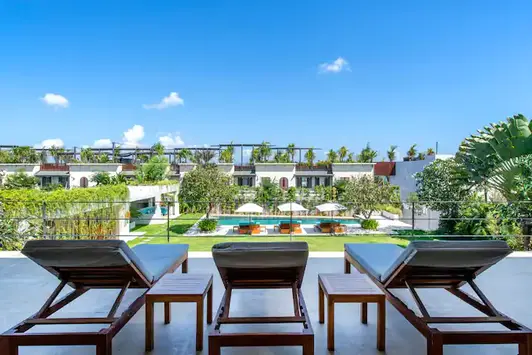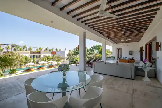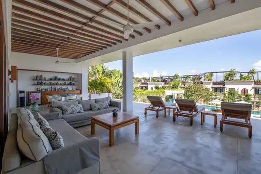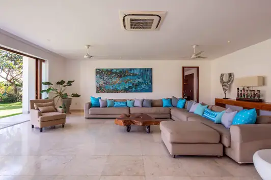 This sophisticated and contemporary villa is all about style; a modern combination of cosmopolitan meets tropical paradise presents itself through wide open spaces, clean lines and beautifully decorated interiors. Immaculate white-on-white on turquoise gives a subtle touch of colour and that beachy island vibe.