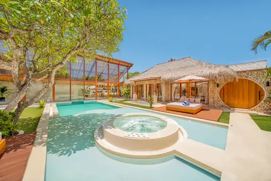 Just steps away from the heart of Seminyak, a newly renovated tropical retreat awaits. Enjoy the modern villa’s refreshed bohemian interiors, with unique amenities including hot-tub and cinema. Celebrate a well-deserved Bali holiday in style, enjoy entertaining with family and friends or relax the day away by the beach-entry pool and swim- up bar. This newly renovated, spacious villa offers eight comfortable bedrooms, perfect for large groups and families. The Villa's exceptional design and modern style offer unparalleled appeal for all groups, with plenty of activities to entertain day and night.